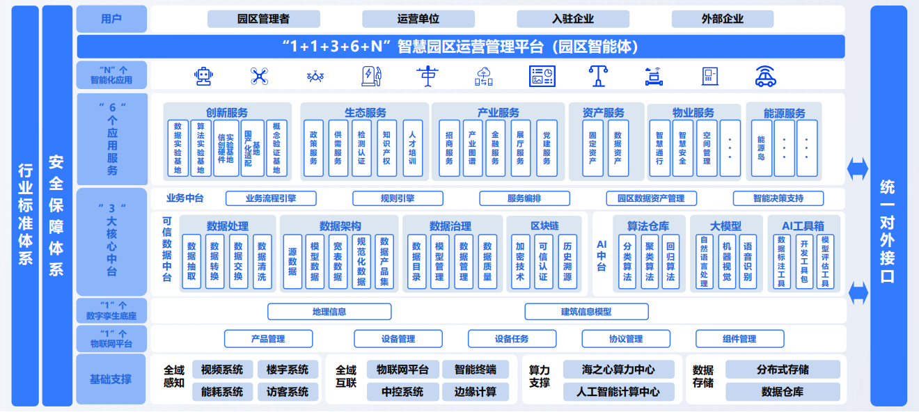 园区智能体系统平台致力于构建“1+1+3+6+N”的运营管理平台,聚焦新一代信息技术产业的核心发展动力,打造智慧化、绿色化、高效化的园区生态系统。